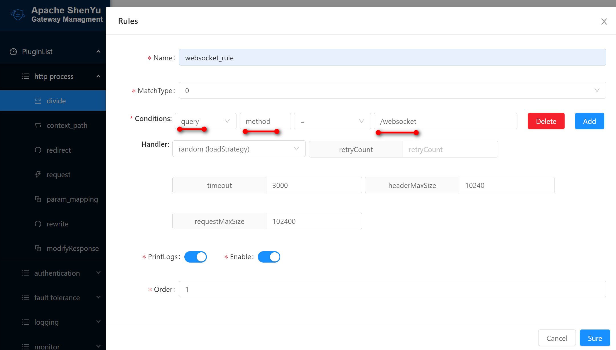 The Apache ShenYu gateway implements support for the WebSocket proxy through the Divide plugin.